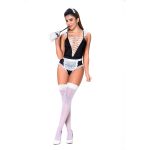 Este coqueto disfraz trae un body con espalda descubierta que tiene detalles negros y blancos, un tocado para el cabello y un corto y sexy delantal.