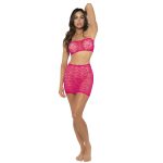 Este set incluye un top triangular y una falda de malla ajustada que resalta cada curva con un toque provocador y femenino.